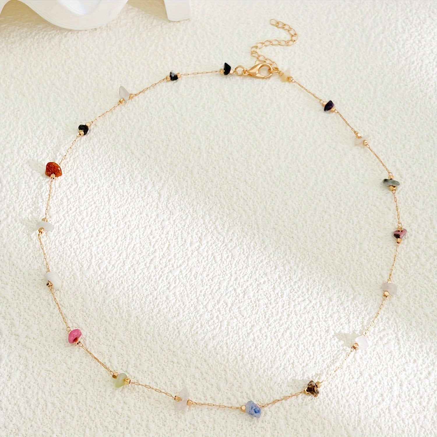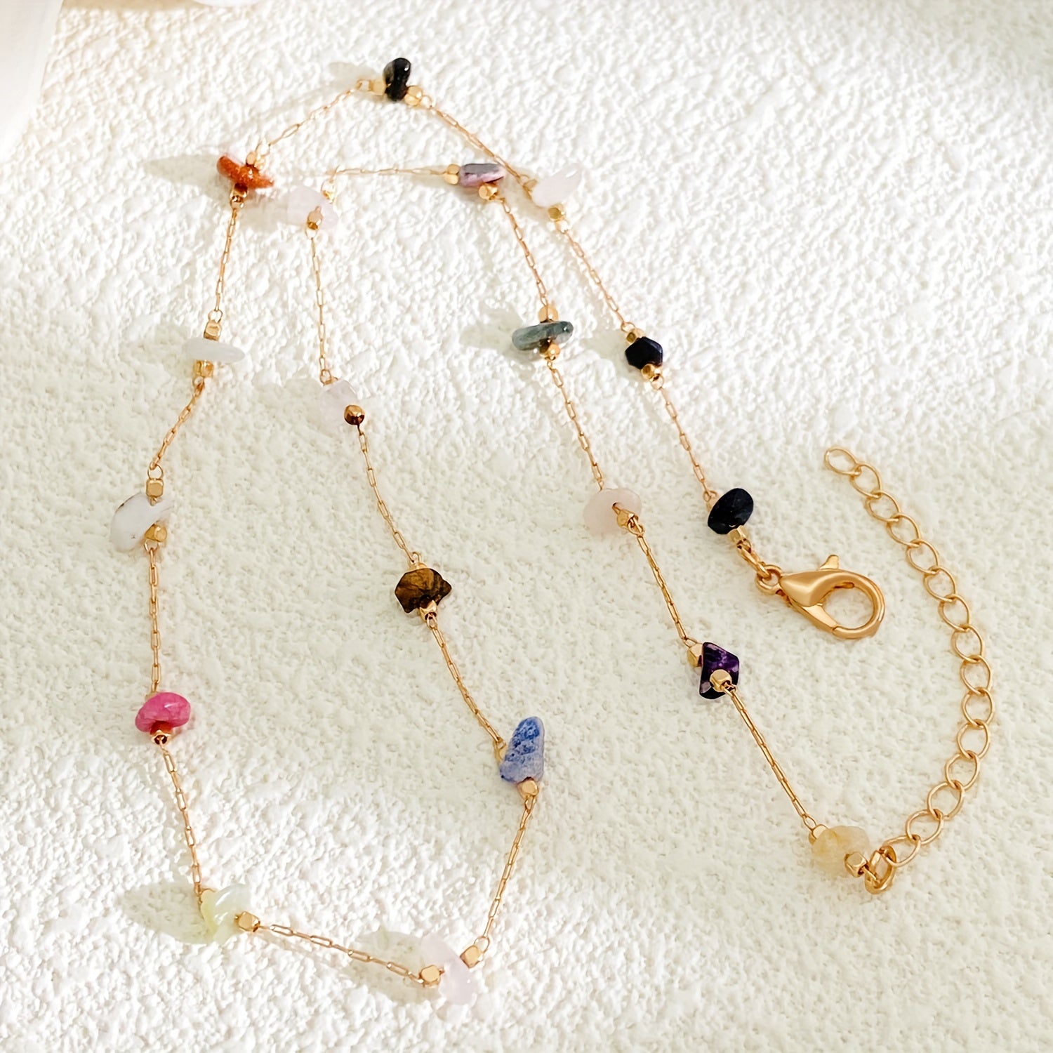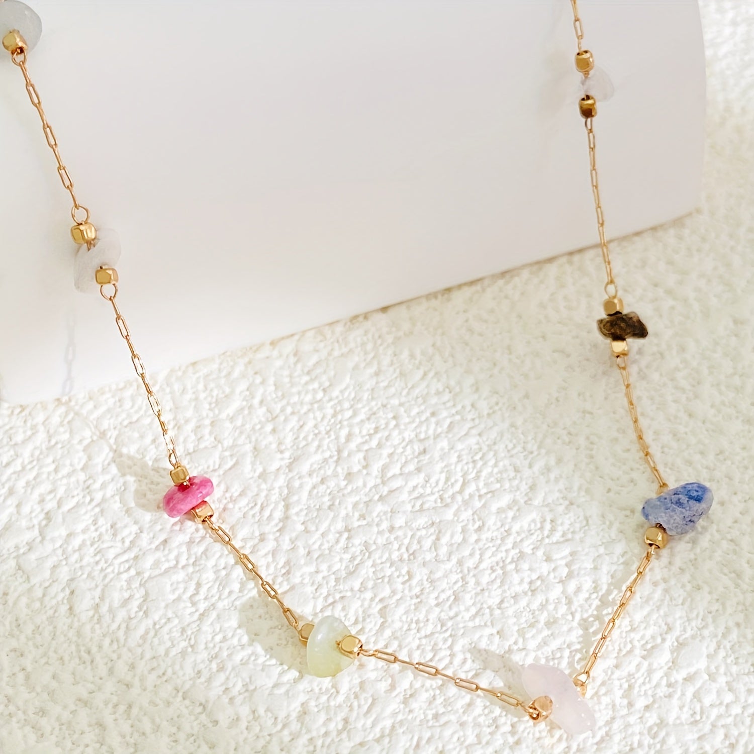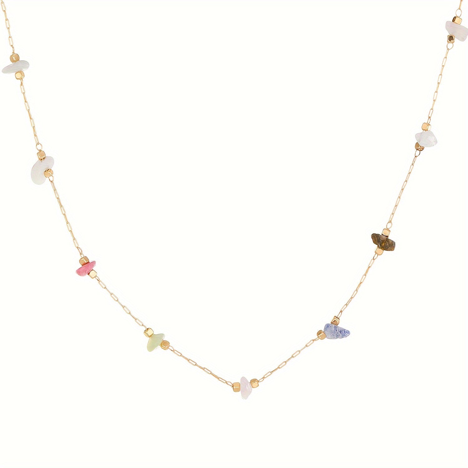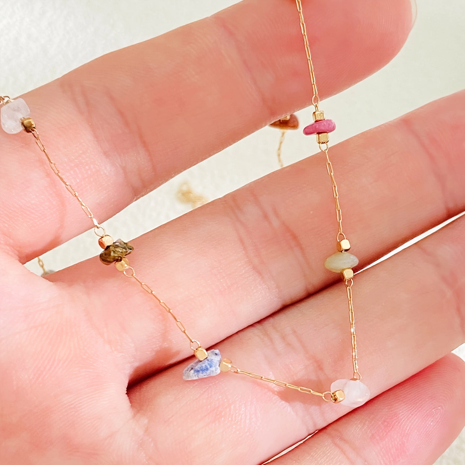 Smykkerkæde med multifarvede udsatte perler — 14K forgyldt, uregelmæssig form.