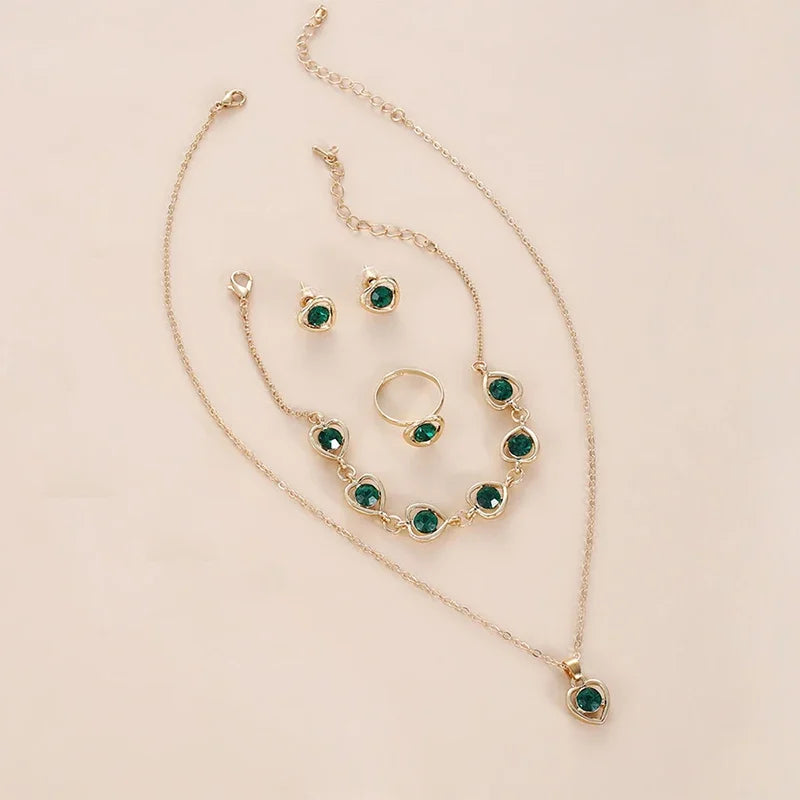 Smykkesættets indhold: Halskæde / Øreringe / Ring / Armbånd