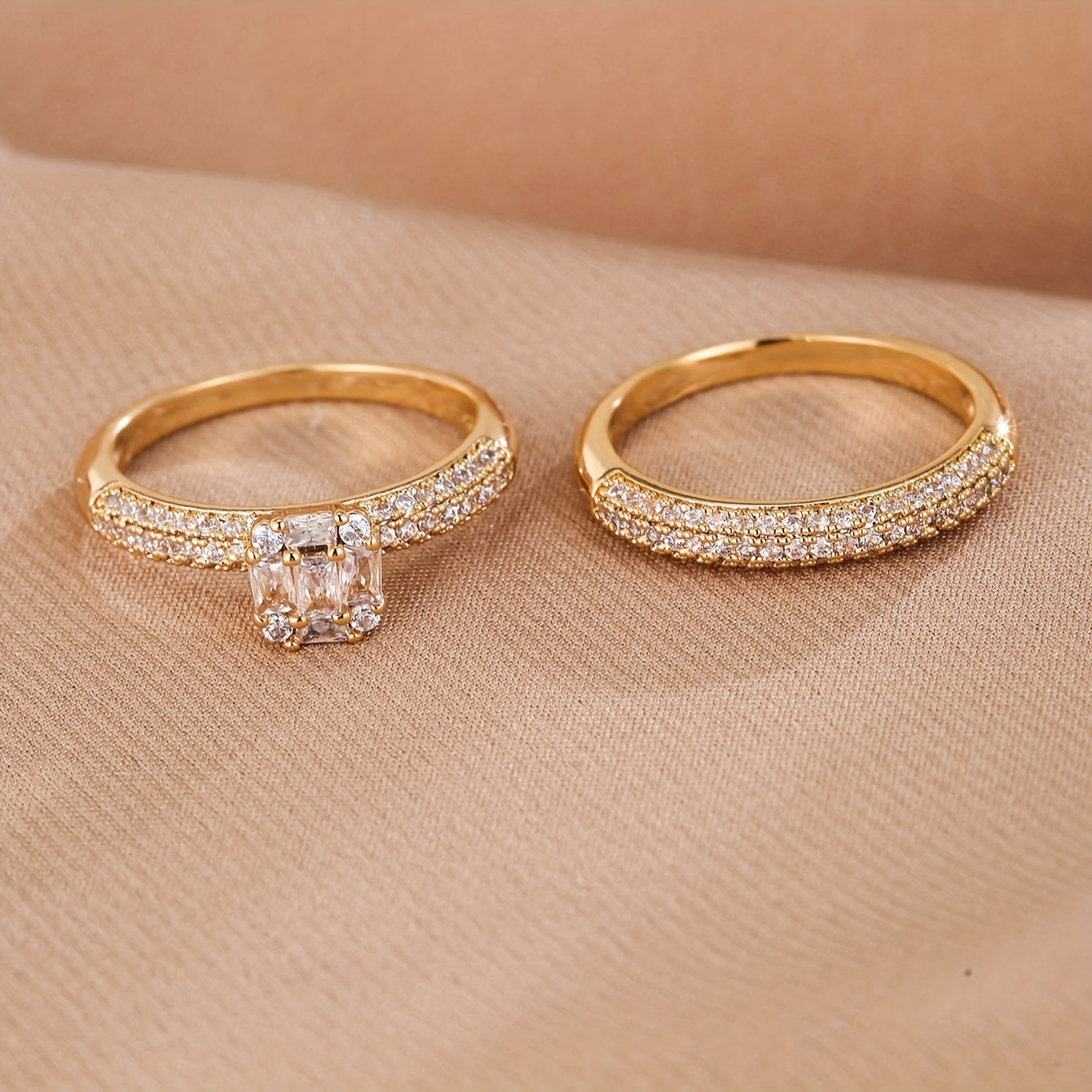 Elegante stable-ringe i guldfarve med funklende zirkonia – fås i flere farver. Perfekte som forlovelses- eller bryllupssmykker.